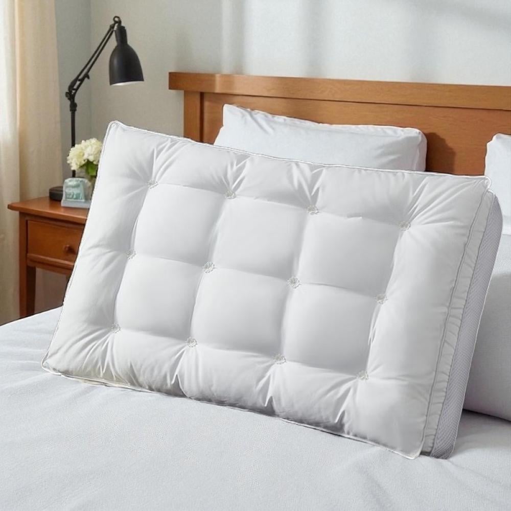 مخدة فندقية عالية الجودة محشوة بألياف مايكروفايبر ناعمة تمنحك إحساس يشبه وسائد الريش الطبيعية ولكن بدون أي حساسية. القماش الخارجي فاخر مصنوع من قطن 100٪ يسمح بمرور الهواء ويمنحك راحة وانتعاش أثناء النوم.
